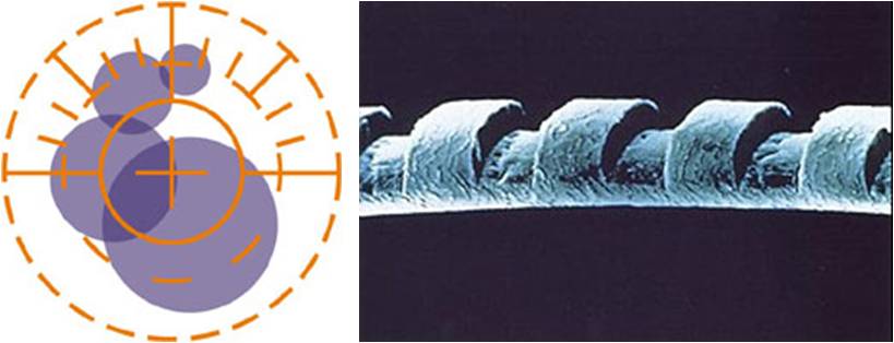 Excimer lazer ile şekillendirilmiş insan saçı (Büyütülmüş resim) |
